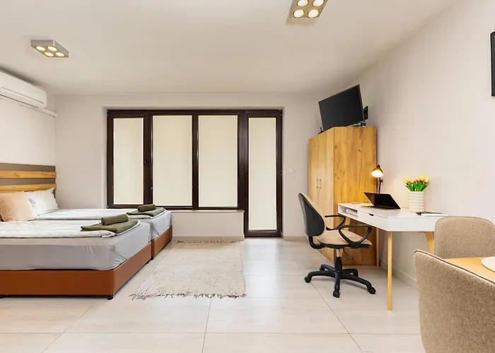 Along with coffee/tea making equipment, this apartment boasts a fully-fitted kitchen featuring a fridge, an oven, and glassware. The apartment is 19 minutes' drive from Plovdiv International airport.